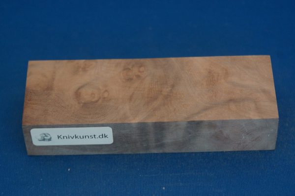 Træet er hårdt og tæt, hvilket gør det ideelt til knivhåndtag. Når det poleres, fremstår Golden Madrone med en silkeblød glans og dybde, der både føles behagelig i hånden og ser imponerende ud.