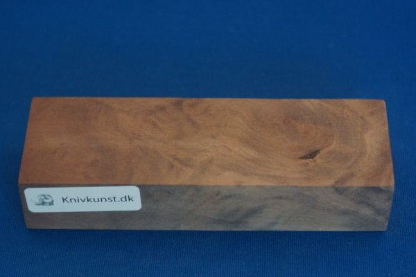 Træet er forholdsvis hårdt og stabilt, hvilket gør det velegnet til knivhåndtag. Når det poleres, fremhæves de fine strukturer, og pebertræet får en blød glans og flot dybde, som både føles behagelig og ser indbydende ud.